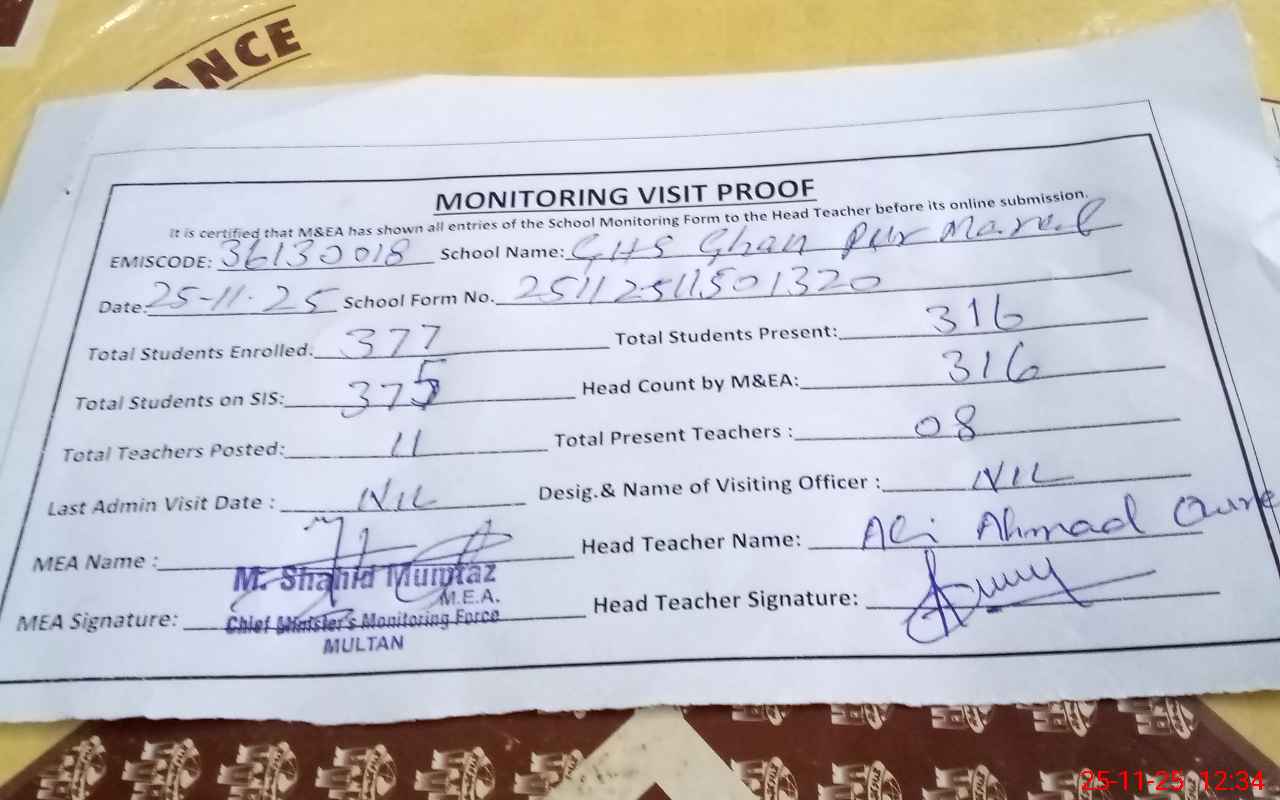 | EMIS Code: 36130018 | Name of School: GHS KHAN PUR MARAL VIA MAKHDOOM RASHID MULTAN | |||