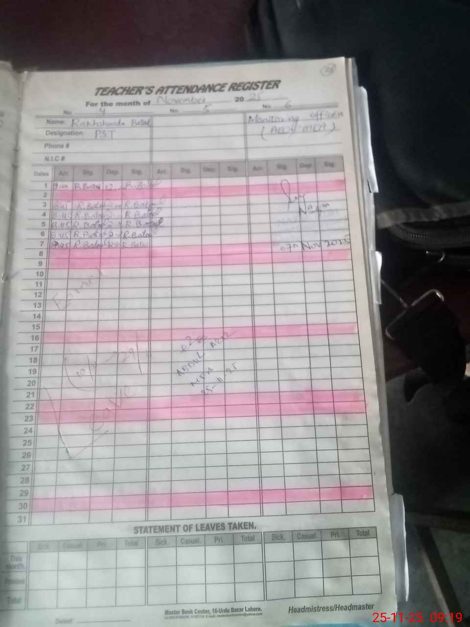 | Name: Ta**** Sa**** Designation: (School Headmaster's/Headmistress's) PST/PTC/JV Phone/Cell Number: 03**** |
