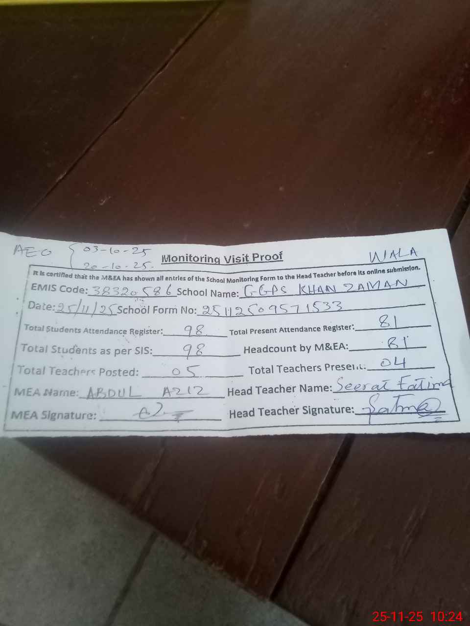 | EMIS Code: 38320586 | Name of School: GGPS KHAN ZAMAN WALA | |||