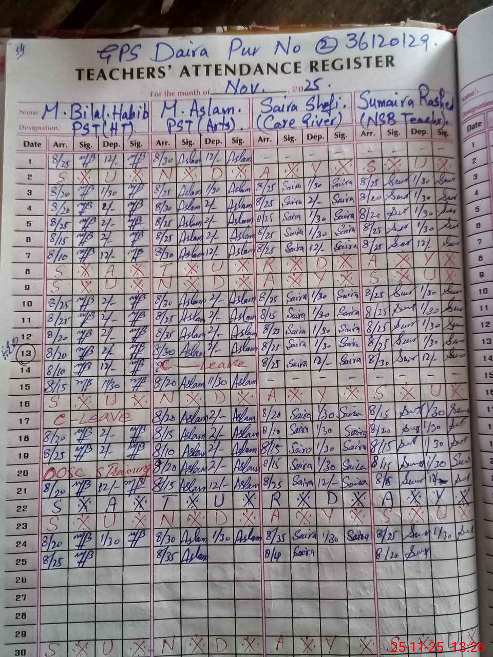 | EMIS Code: 36120129 | Name of School: GPS DAIRA PUR NO. 2 SHUJA ABAD | |||