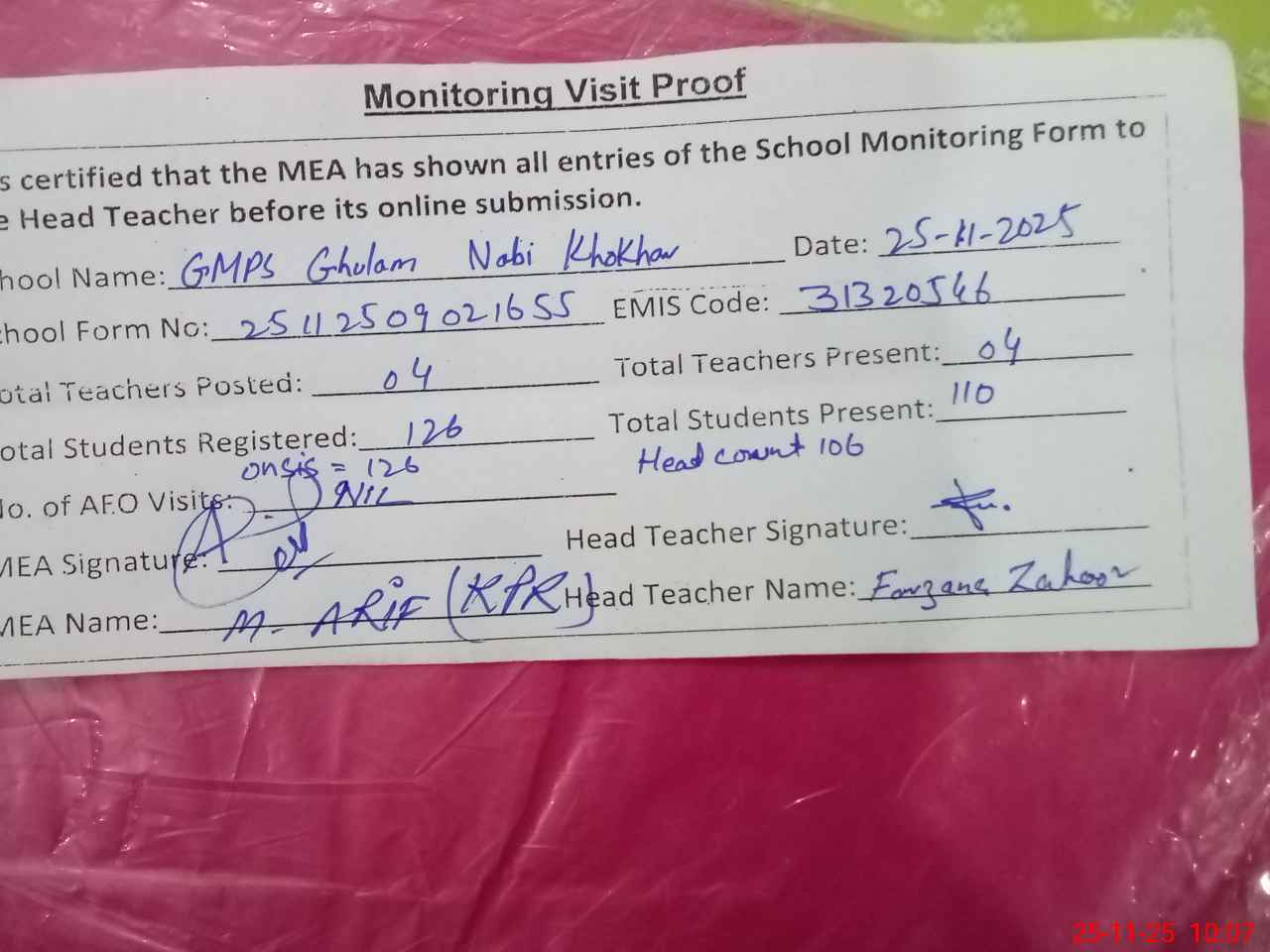 | EMIS Code: 31320546 | Name of School: GMPS GHULAM NABI KHUKHAR | |||