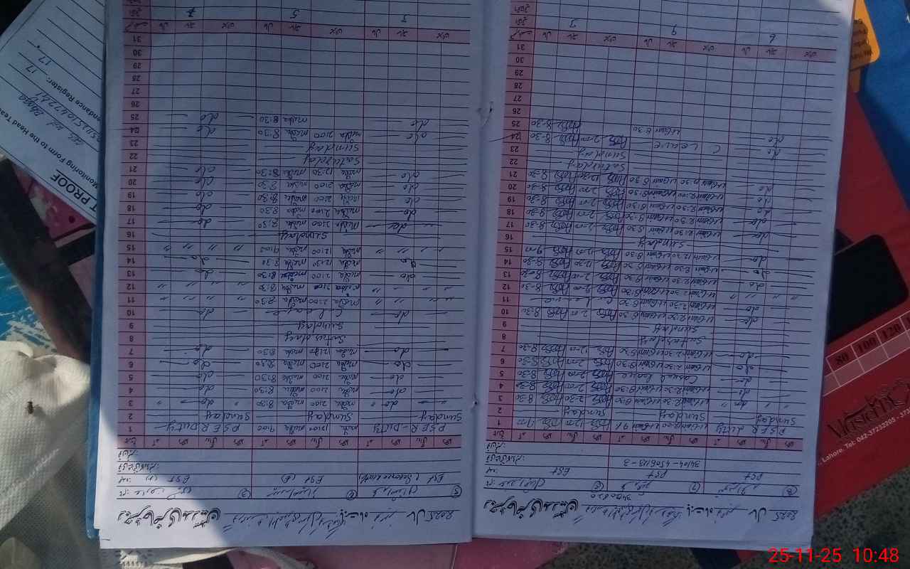 | CNIC | Full Name | Designation | R/C | Absence During Last Calender Month |