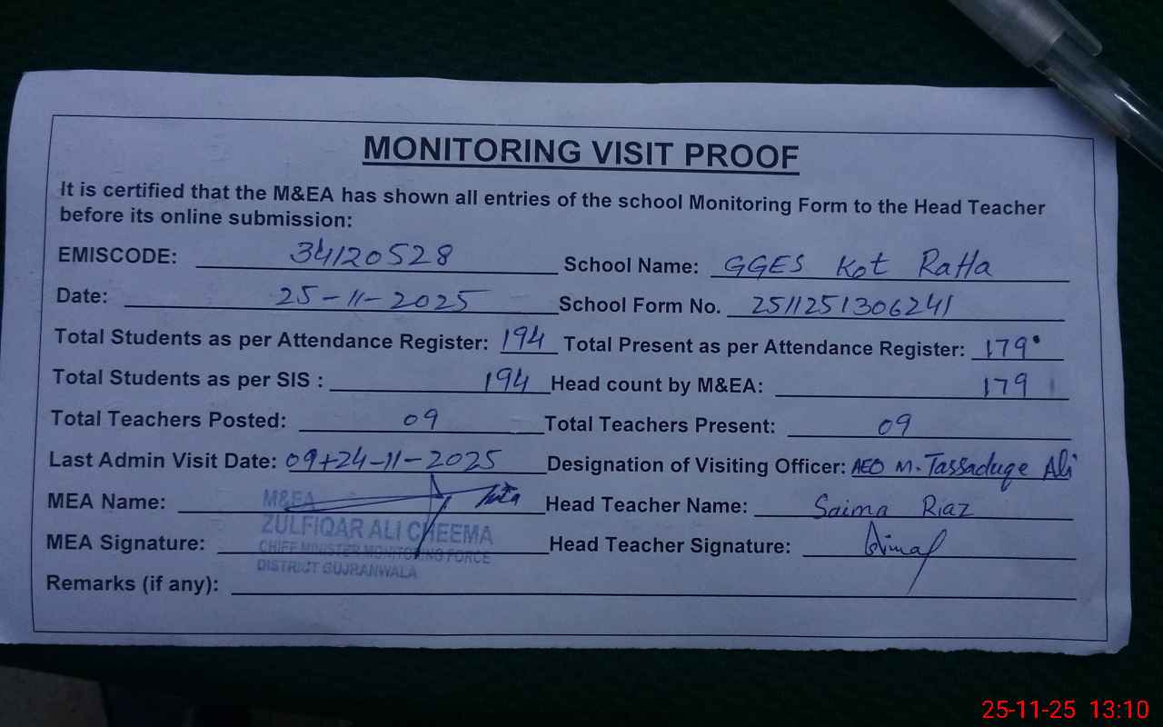 | EMIS Code: 34120528 | Name of School: GGES KOT RATTA | |||