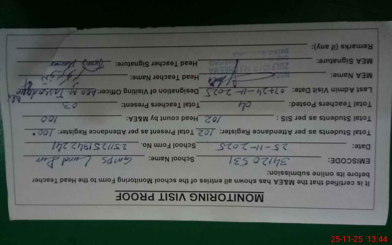 | EMIS Code: 34120531 | Name of School: GMPS LUND PUR | |||