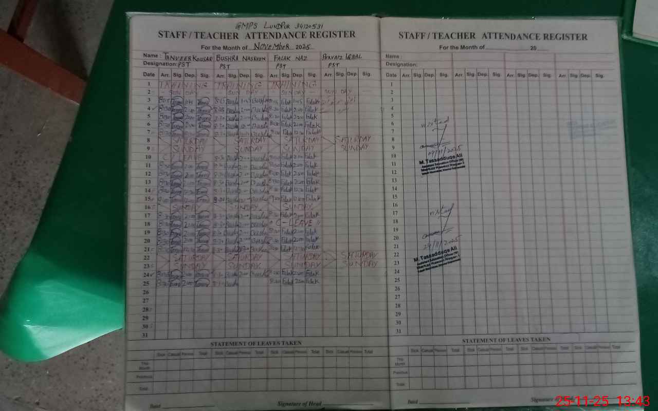 | Attendance Register | Head Teacher | MEA with School | Visit Proof |