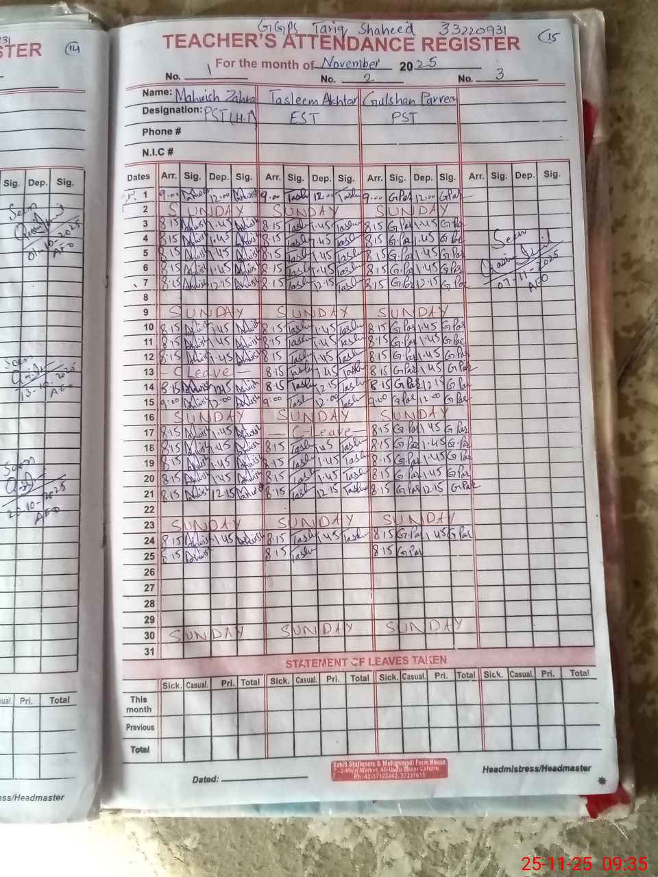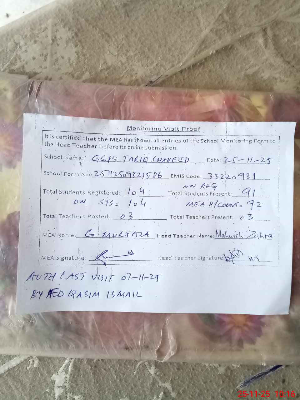| EMIS Code: 33220931 | Name of School: GGPS TARIQ SHAHEED | |||