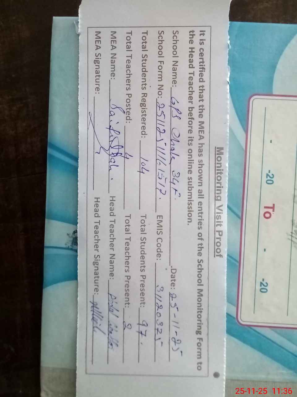 | EMIS Code: 31120375 | Name of School: GPS CHAK NO 34/F | |||