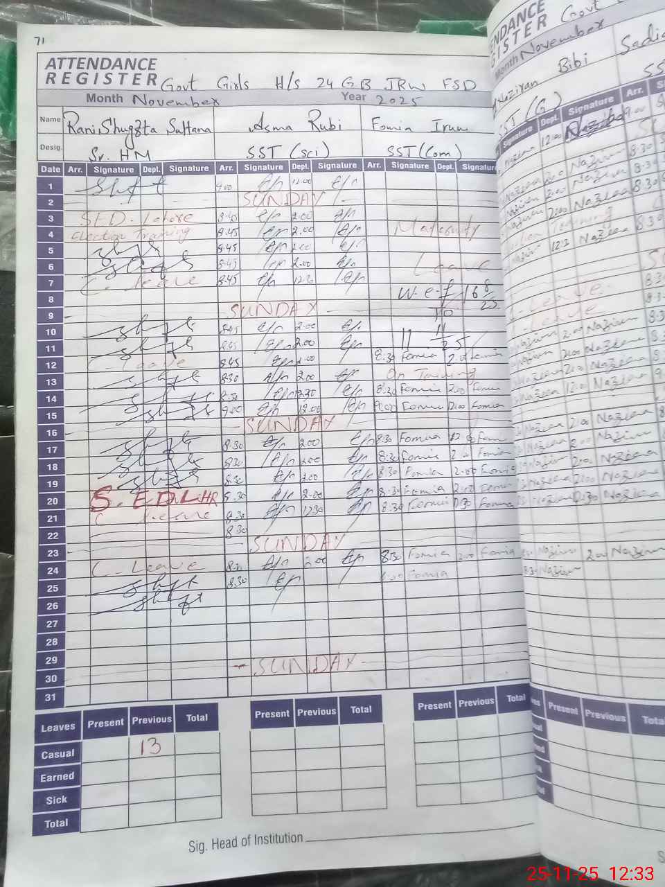 | Leave | Duty | Absent | Maternity | Medical | Ex- Pak |