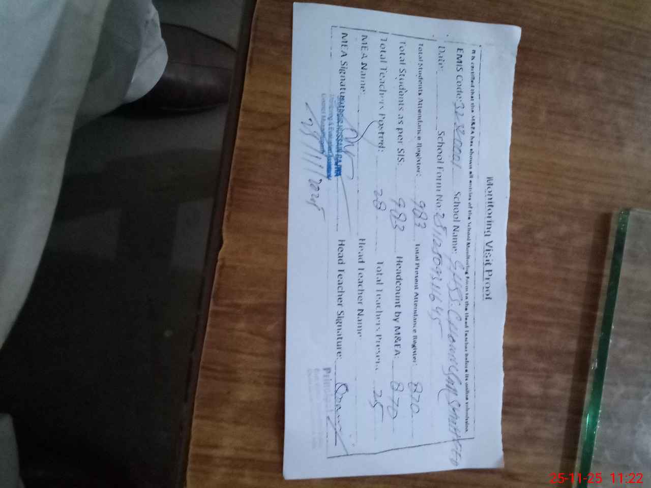 | Attendance Register | Head Teacher | MEA with School | Visit Proof |