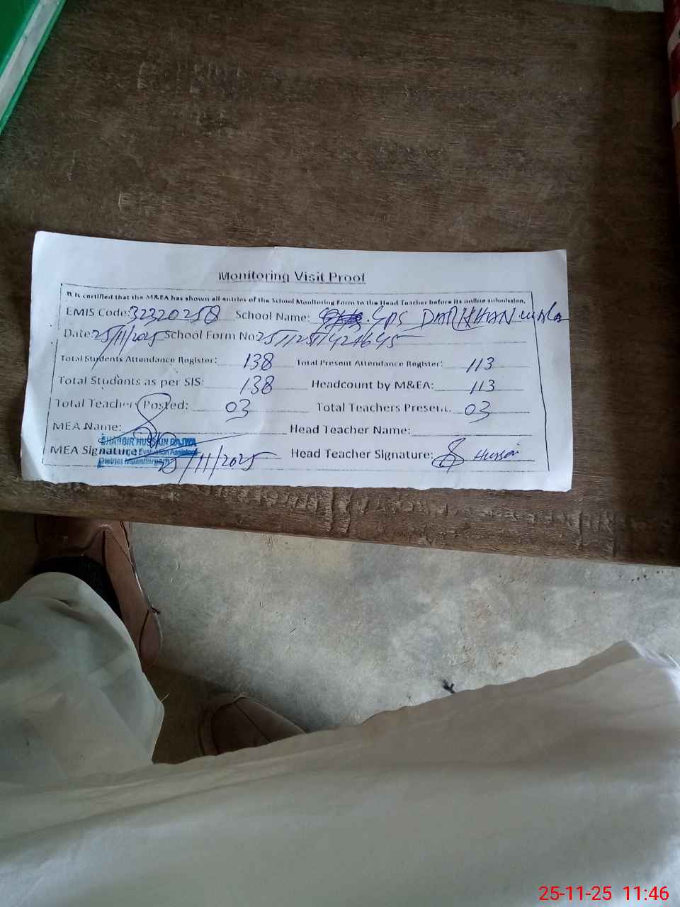 | EMIS Code: 32320258 | Name of School: GPS DIRKHAN WALA | |||