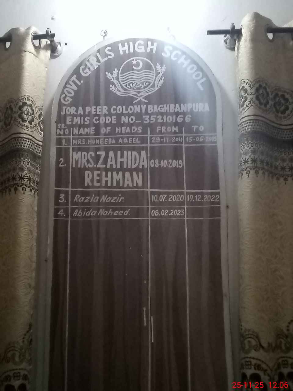 | EMIS Code: 35210166 | Name of School: GGHS JORAY PEER COLONY BAGHBAN PURA | |||
