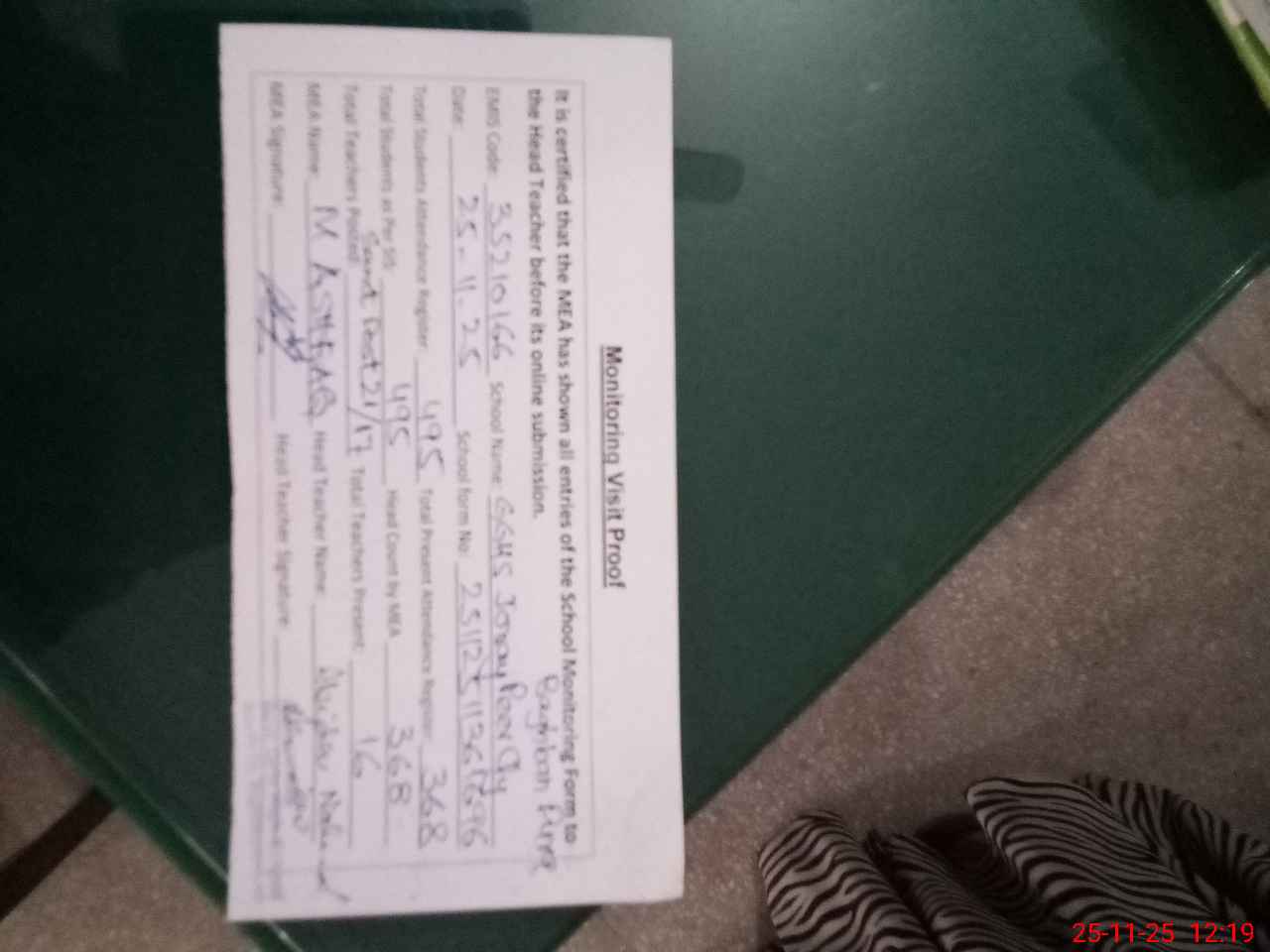 | Remarks (Use Separate Page if Required): DDEO Mian Muhammad Shakeel visited on 05-11-25 AEO Bilal Kazmi visited on 28-10-25 35210166 | |||||