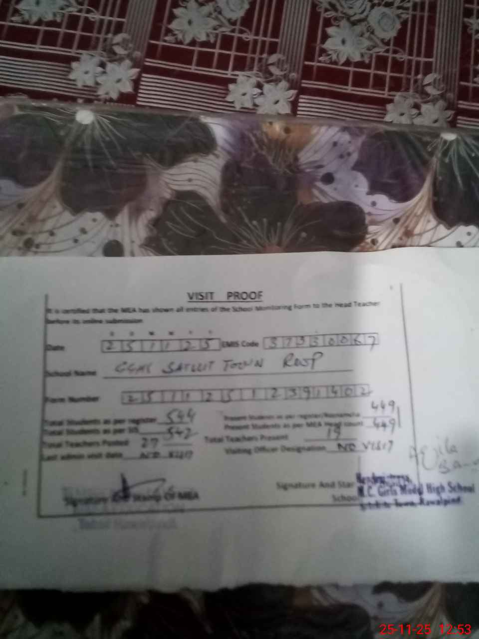 | Certified that this School was Inspected by the Undersigned MEA/DMO Today and the Information Stated Above is as Per Record. | |||||