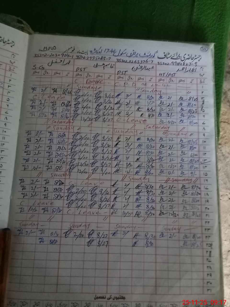 | CNIC | Full Name | Designation | R/C | Absence During Last Calender Month |