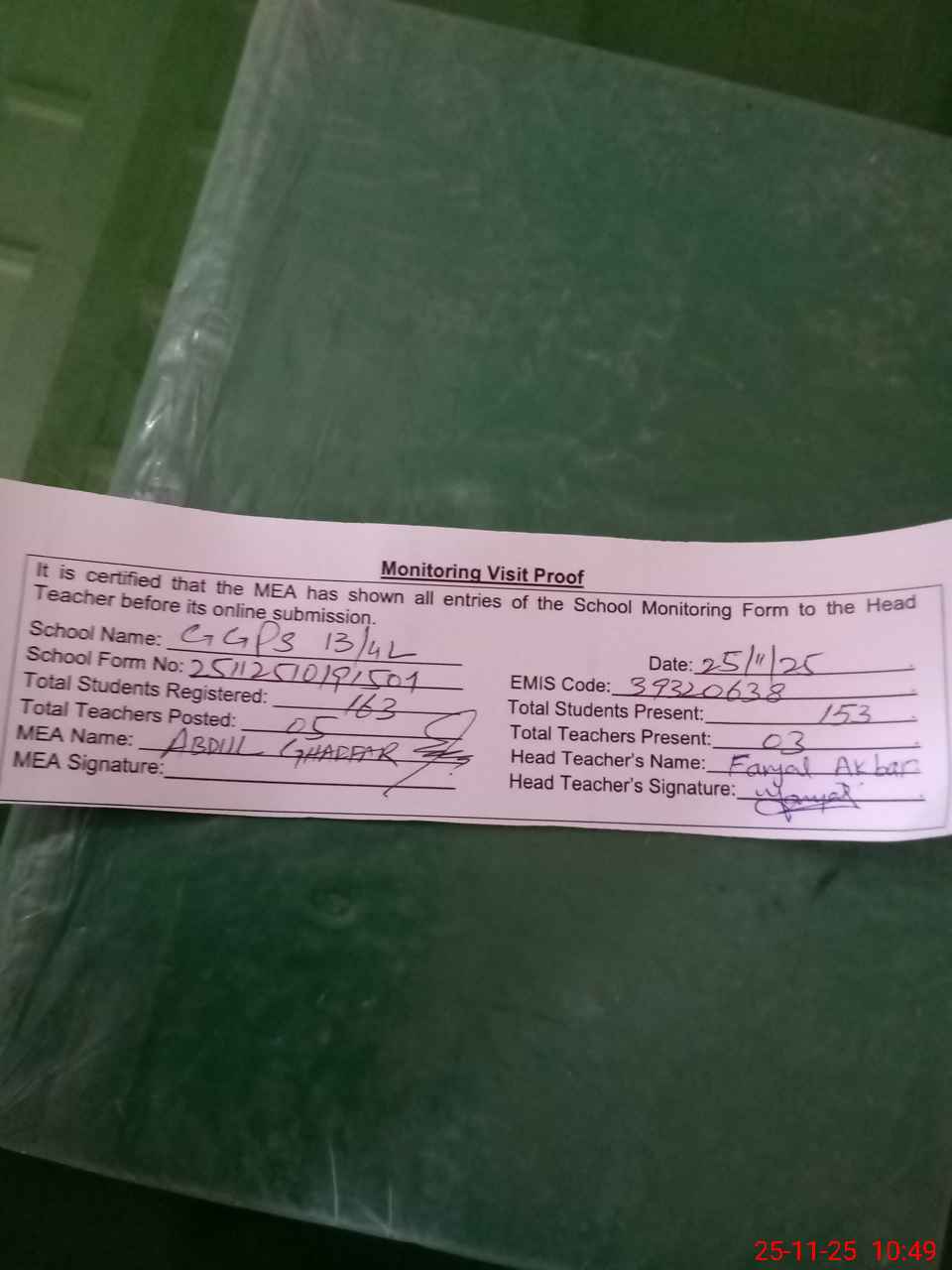| Certified that this School was Inspected by the Undersigned MEA/DMO Today and the Information Stated Above is as Per Record. | |||||