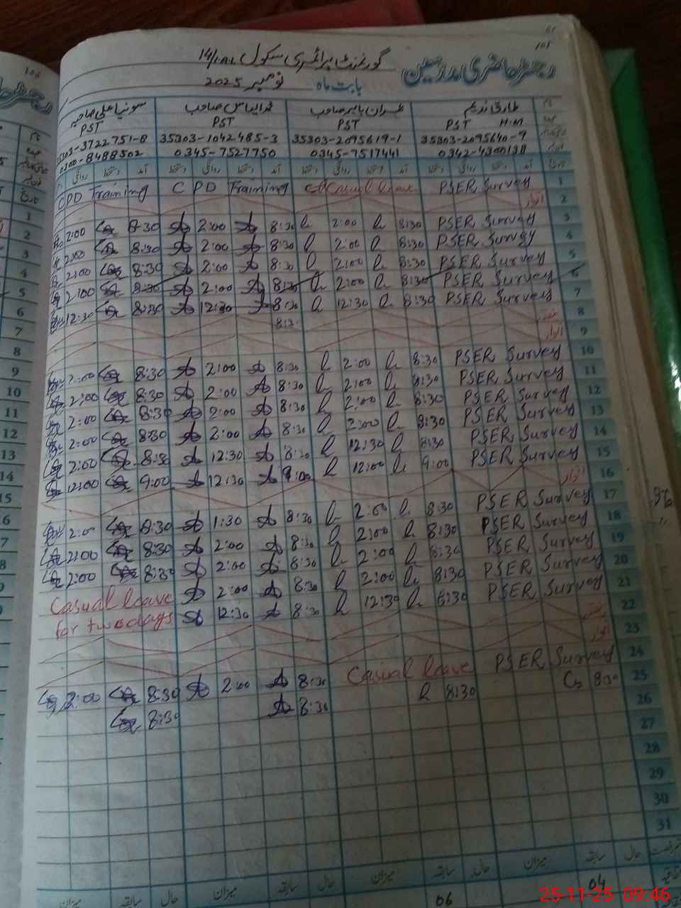 | CNIC | Full Name | Designation | R/C | Absence During Last Calender Month |