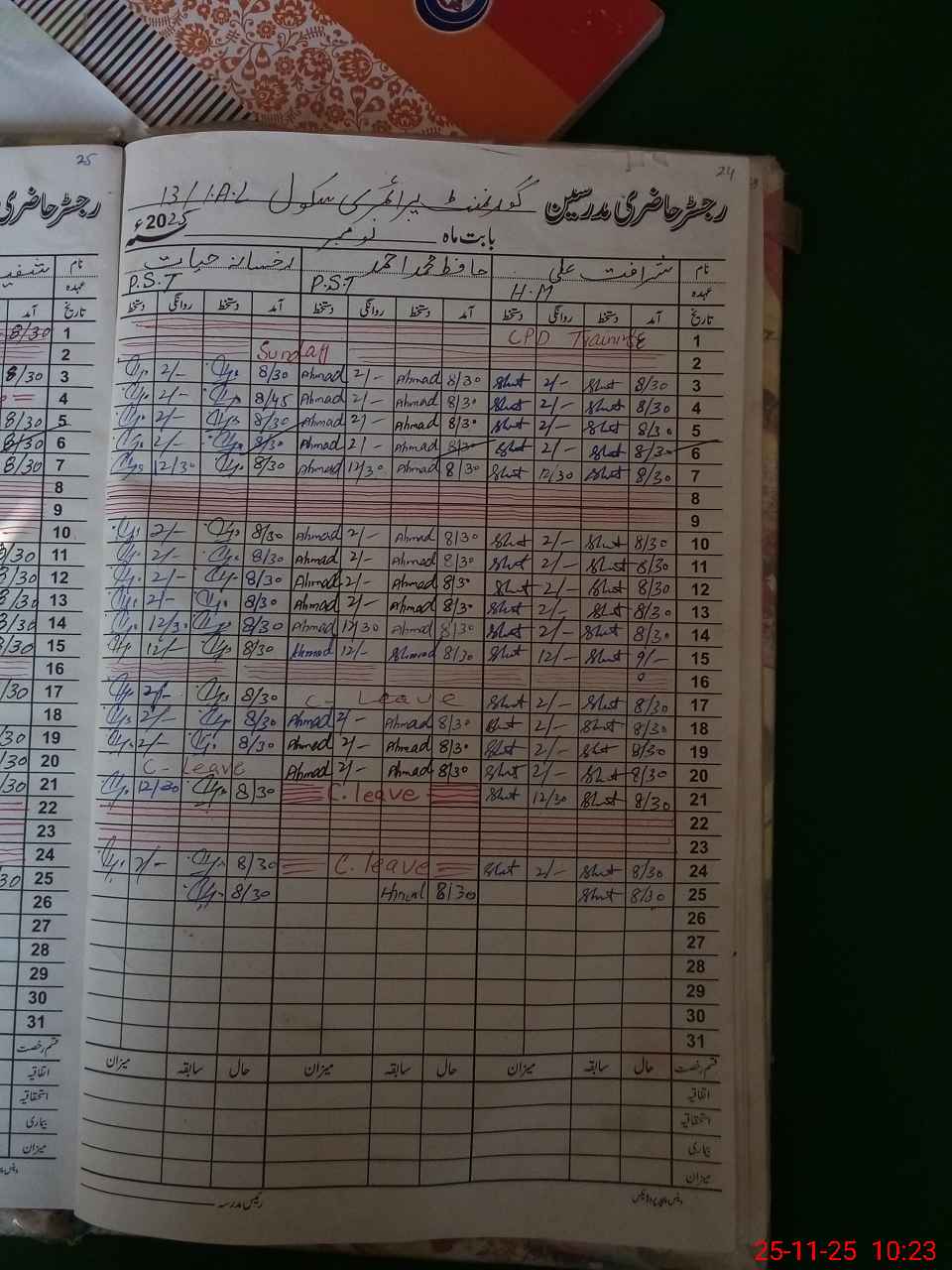 | CNIC | Full Name | Designation | R/C | Absence During Last Calender Month |