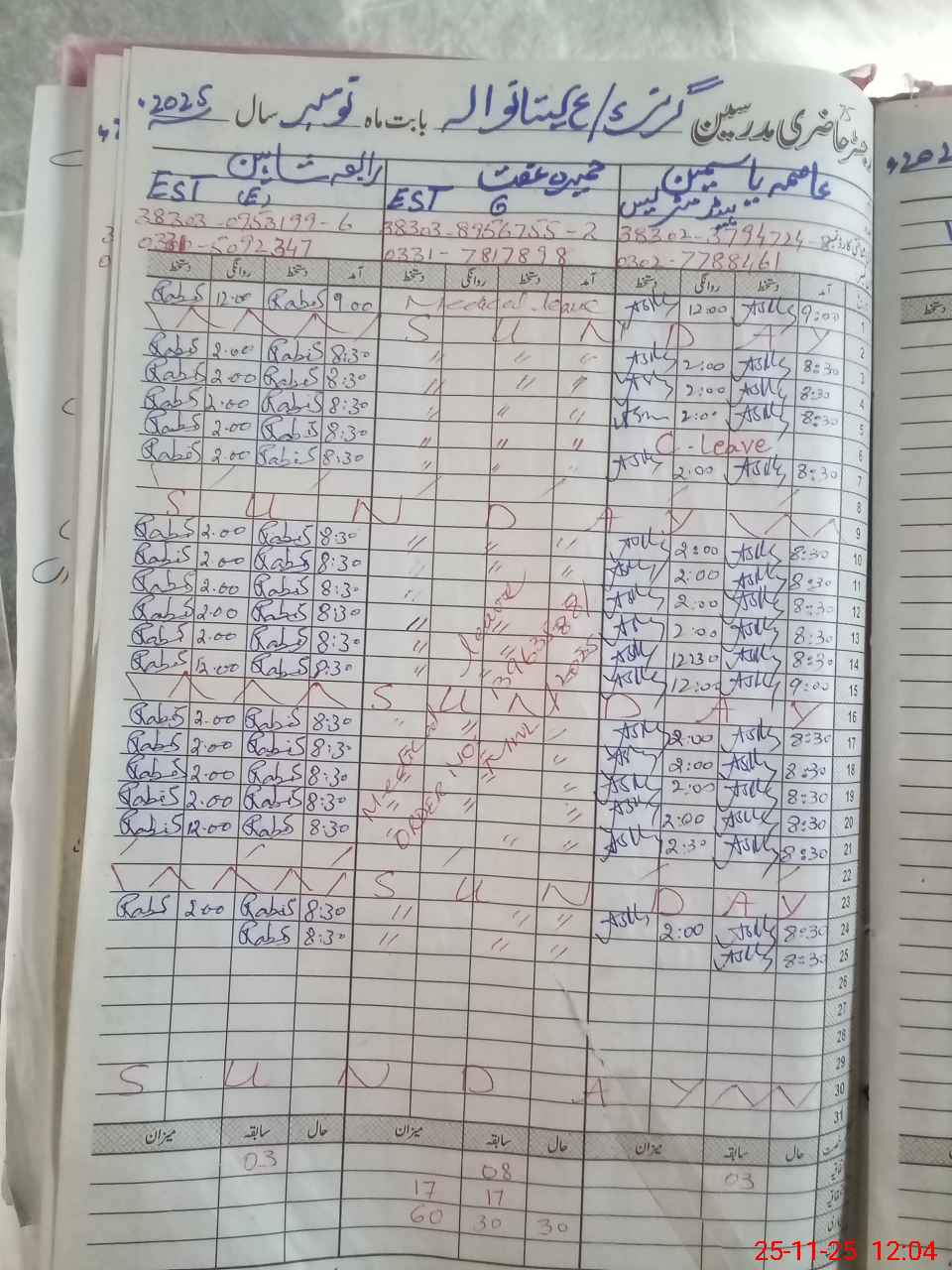 | CNIC | Full Name | Designation | R/C | Absence During Last Calender Month |