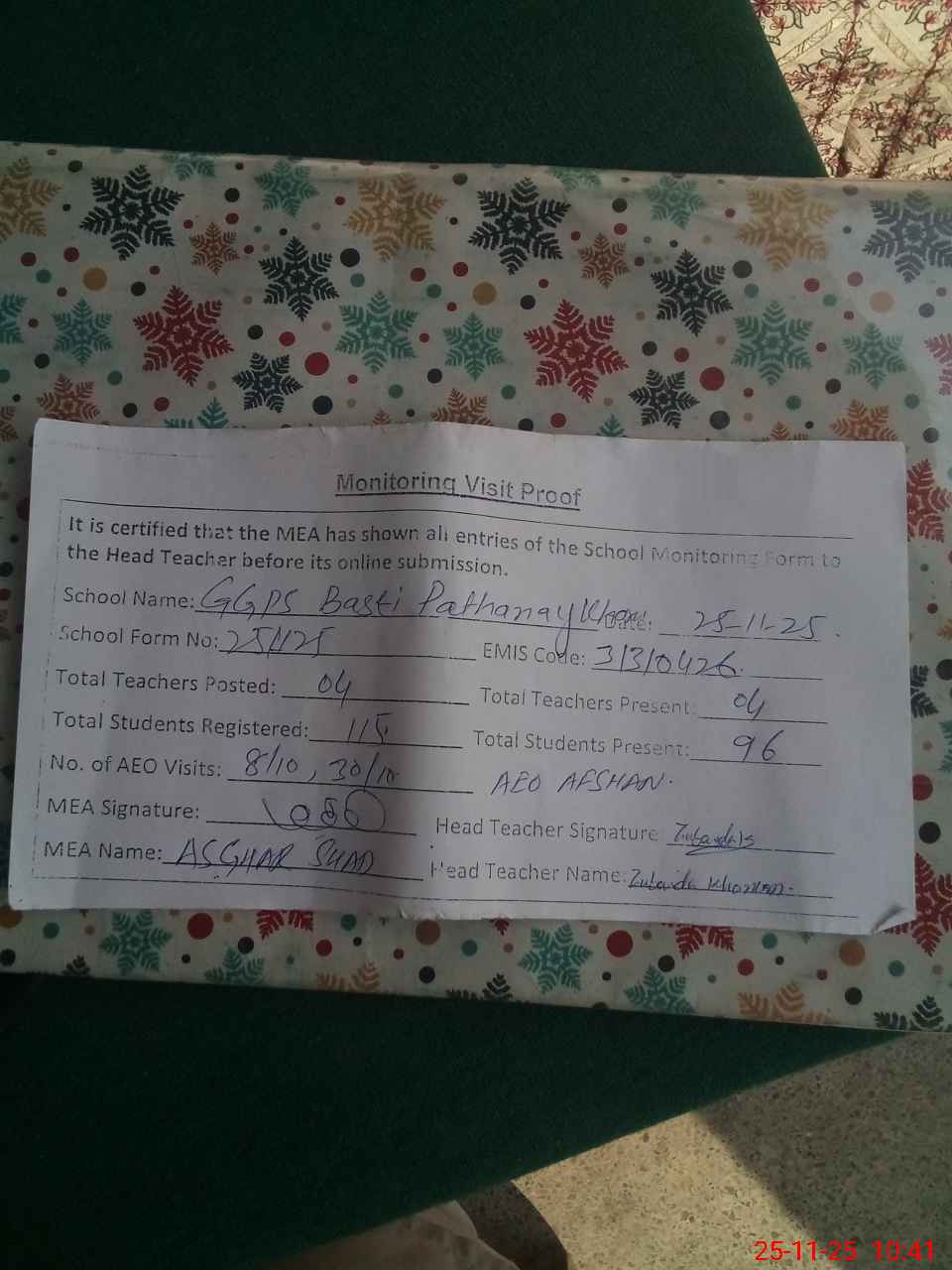 | EMIS Code: 31310426 | Name of School: GGPS BASTI PATHANY KHAN | |||