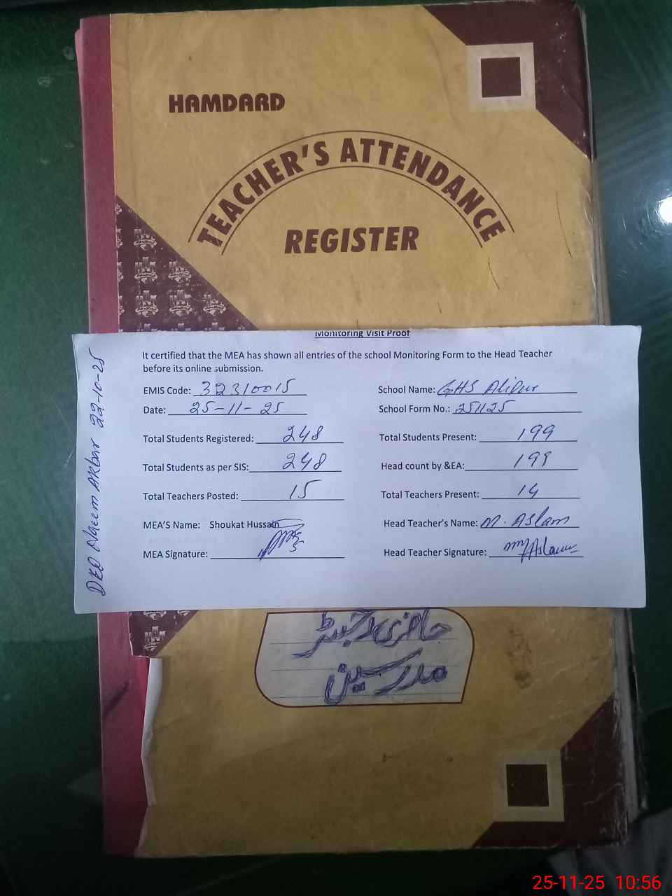 | EMIS Code: 32310015 | Name of School: GHS ALI PUR | |||