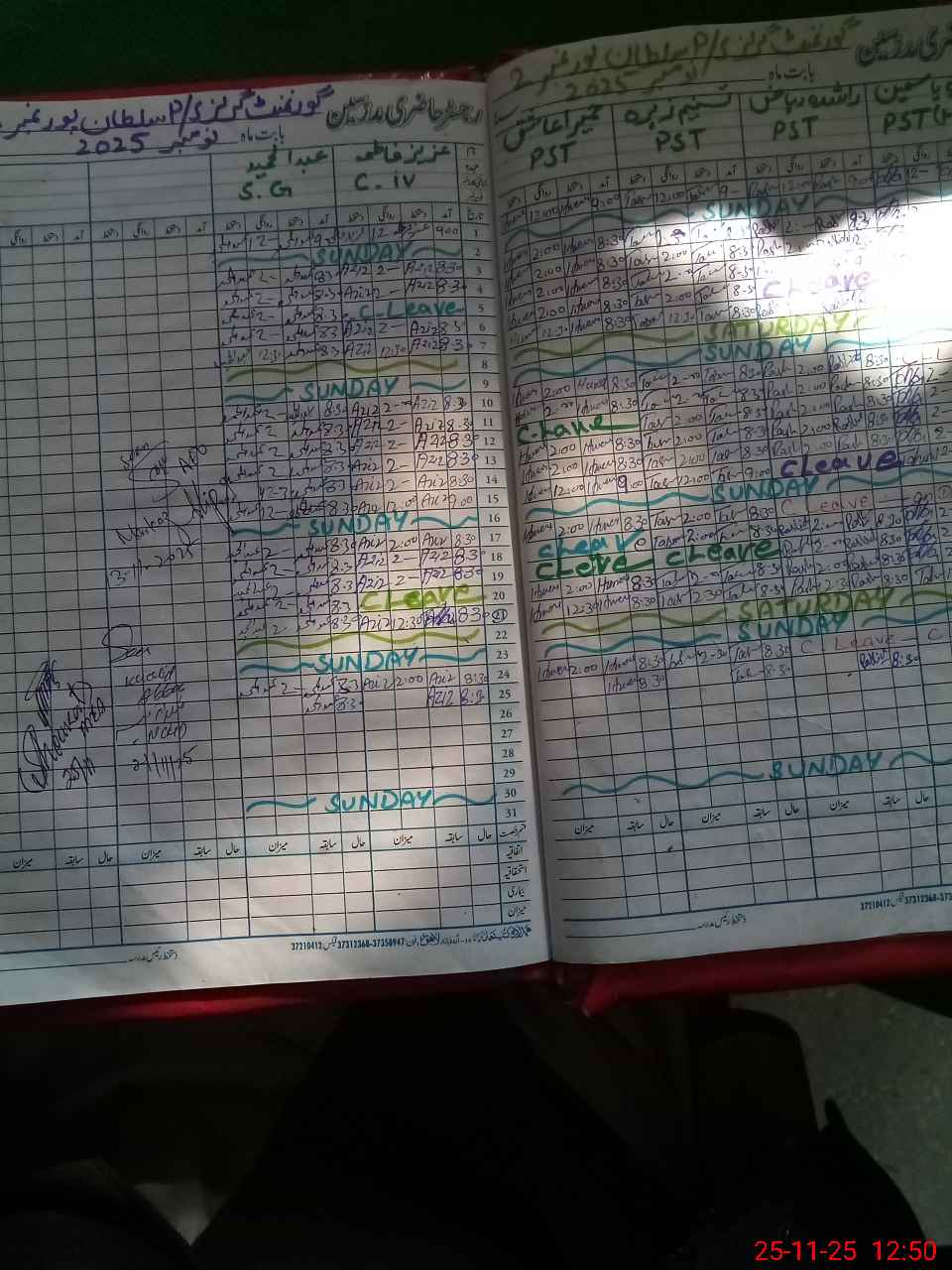 | CNIC | Full Name | Designation | R/C | Absence During Last Calender Month |