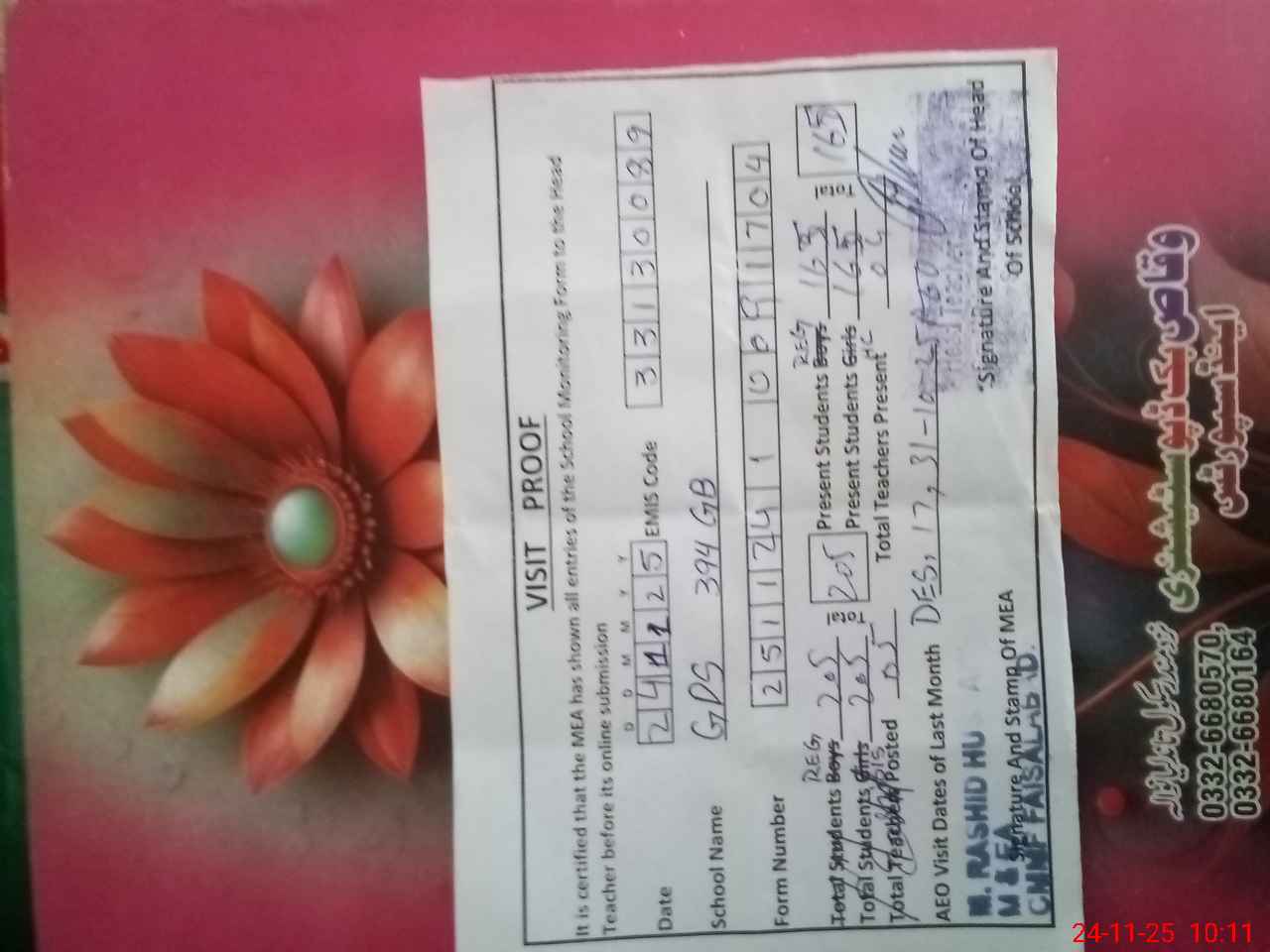 | Attendance Register | Head Teacher | MEA with School | Visit Proof |