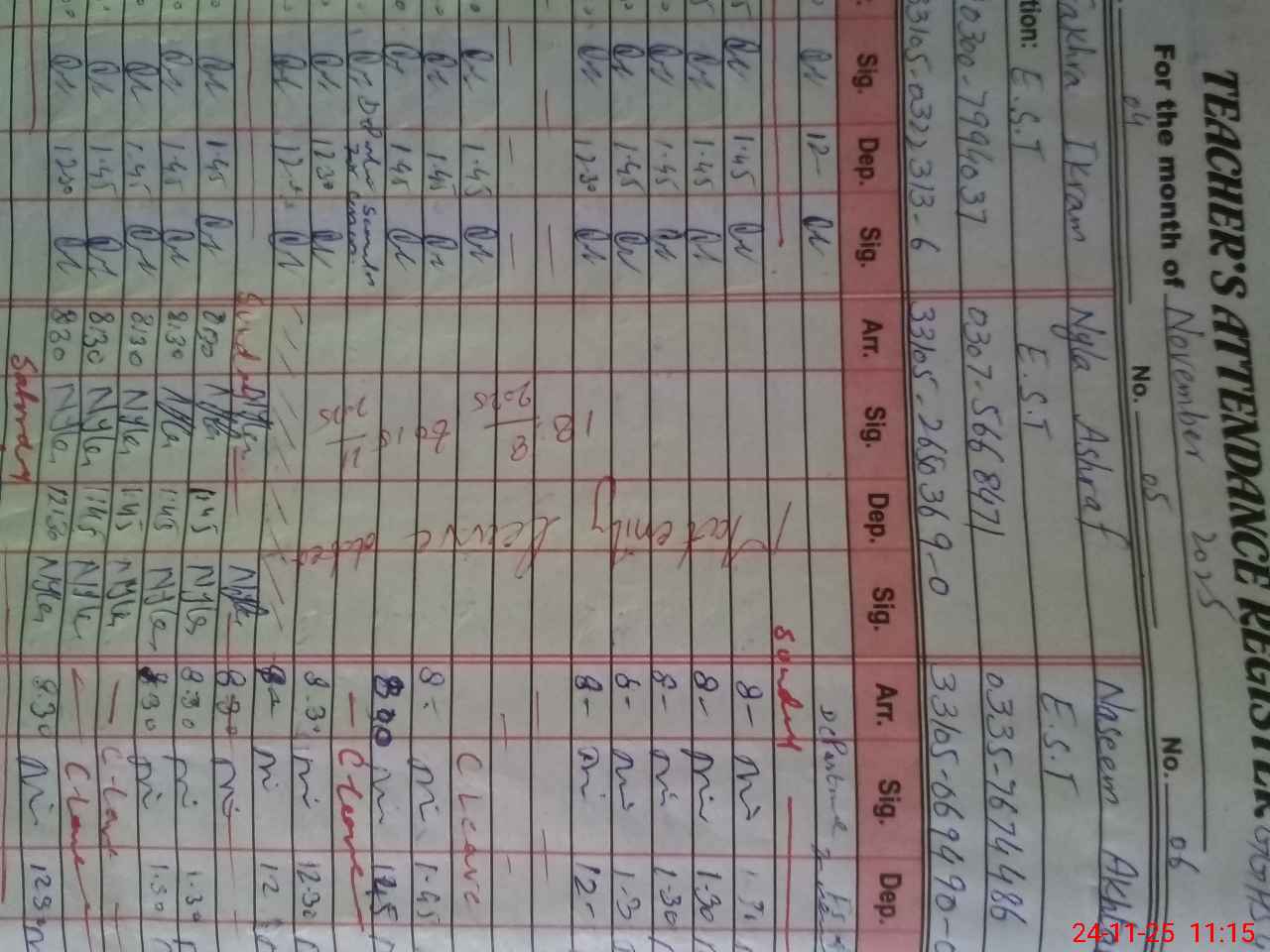 | Name: SA**** AS**** Designation: (School Headmaster's/Headmistress's) SST (GENERAL) Phone/Cell Number: 03**** |