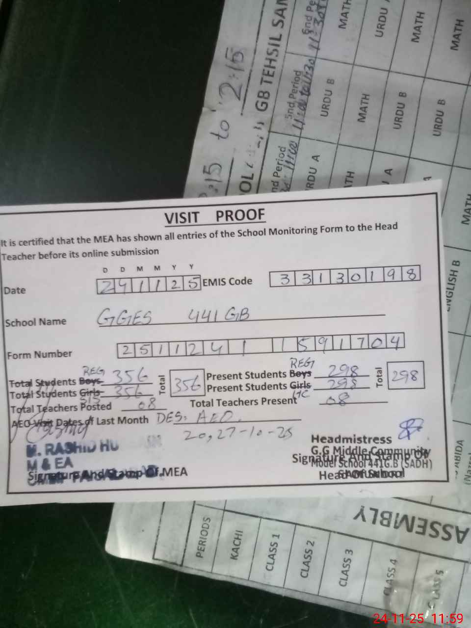 | Attendance Register | Head Teacher | MEA with School | Visit Proof |