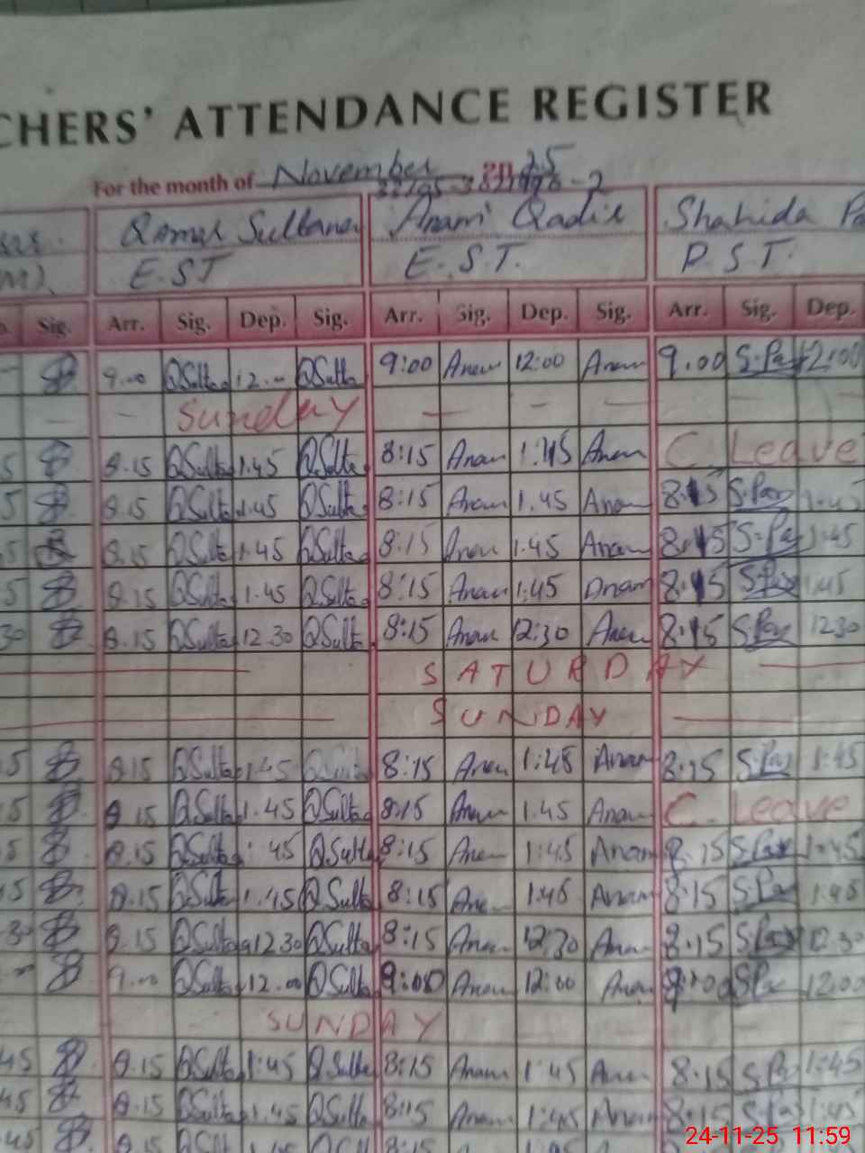 | CNIC | Full Name | Designation | R/C | Absence During Last Calender Month |
