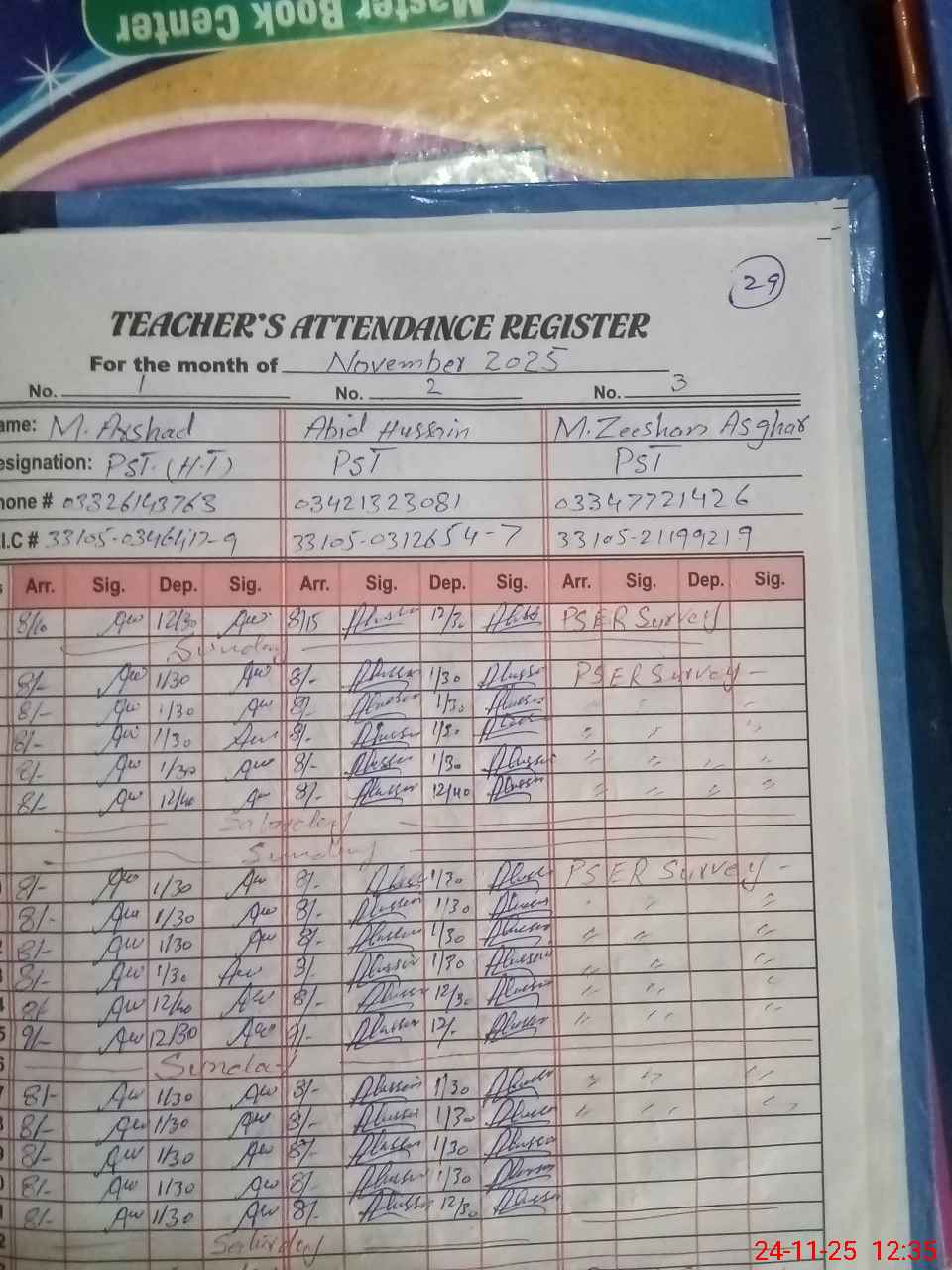| CNIC | Full Name | Designation | R/C | Absence during last cal. month |