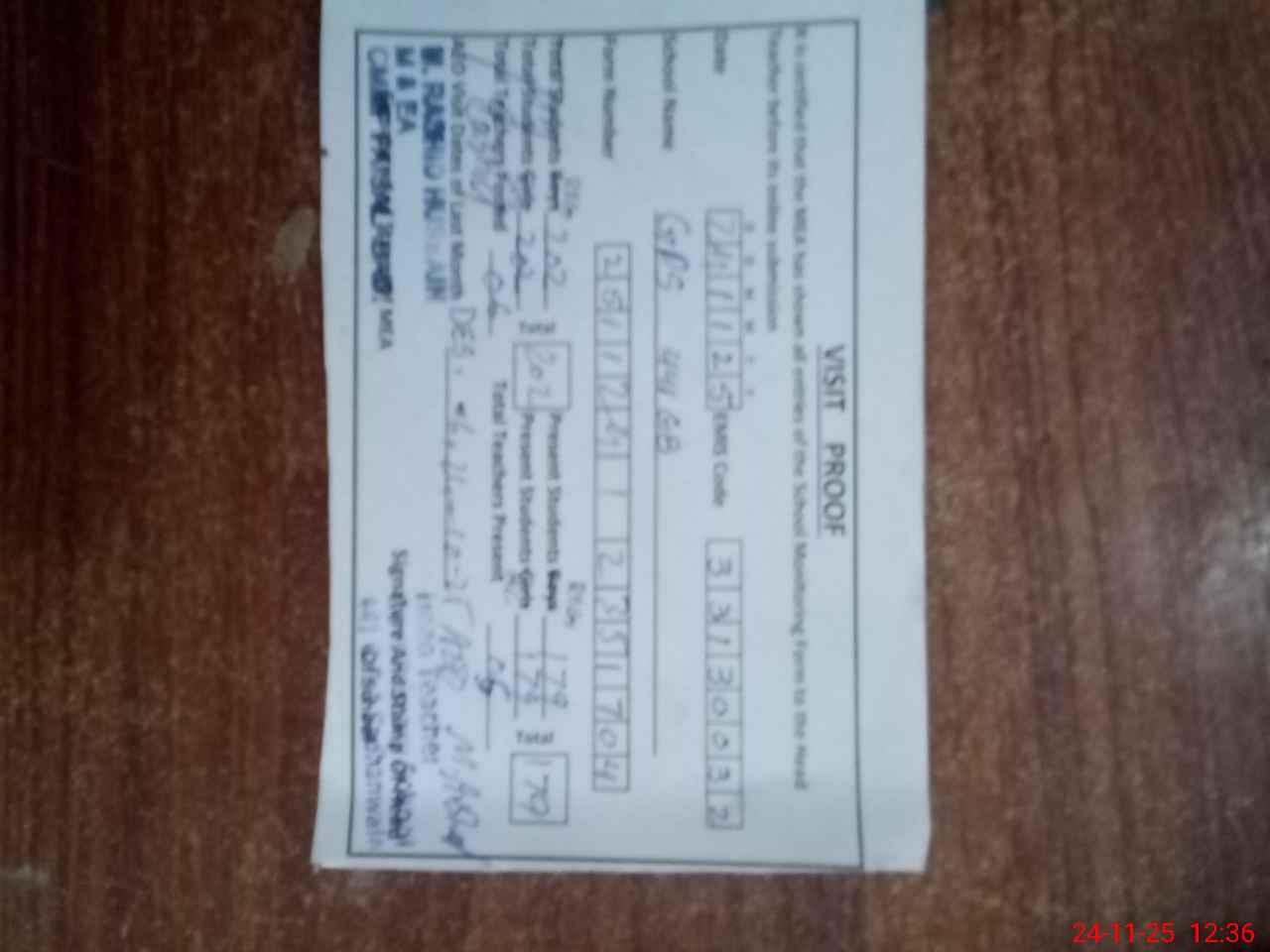 | Attendance Register | Head Teacher | MEA with School | Visit Proof |