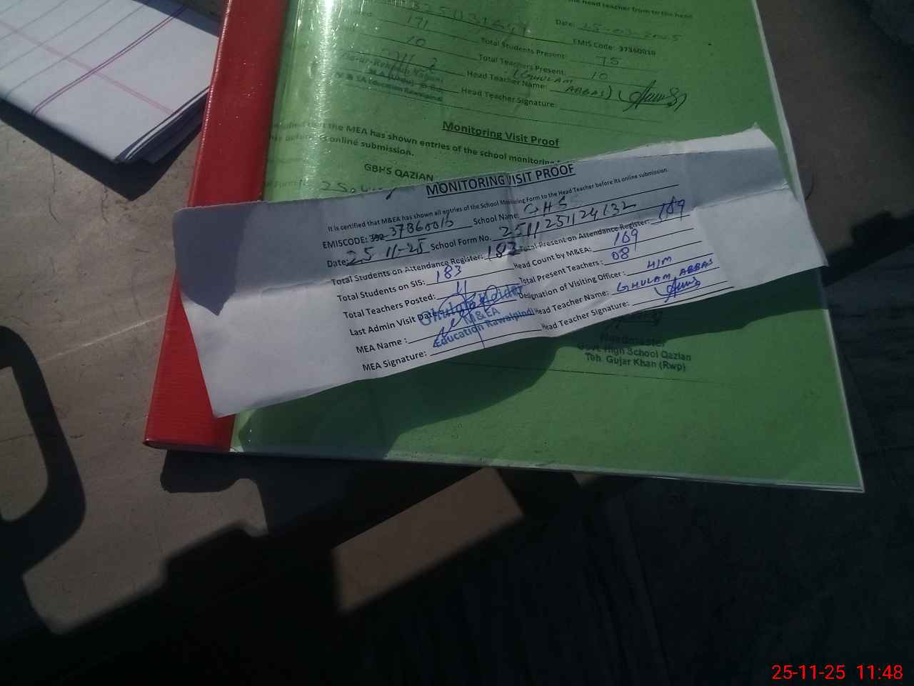 | Attendance Register | Head Teacher | MEA with School | Visit Proof |