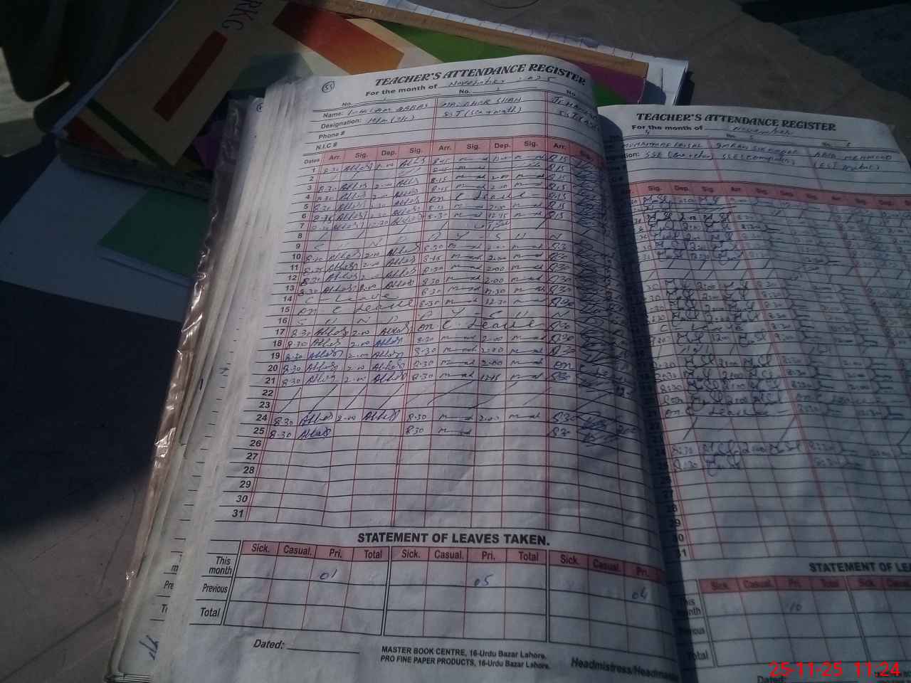 | CNIC | Full Name | Designation | R/C | Absence During Last Calender Month |