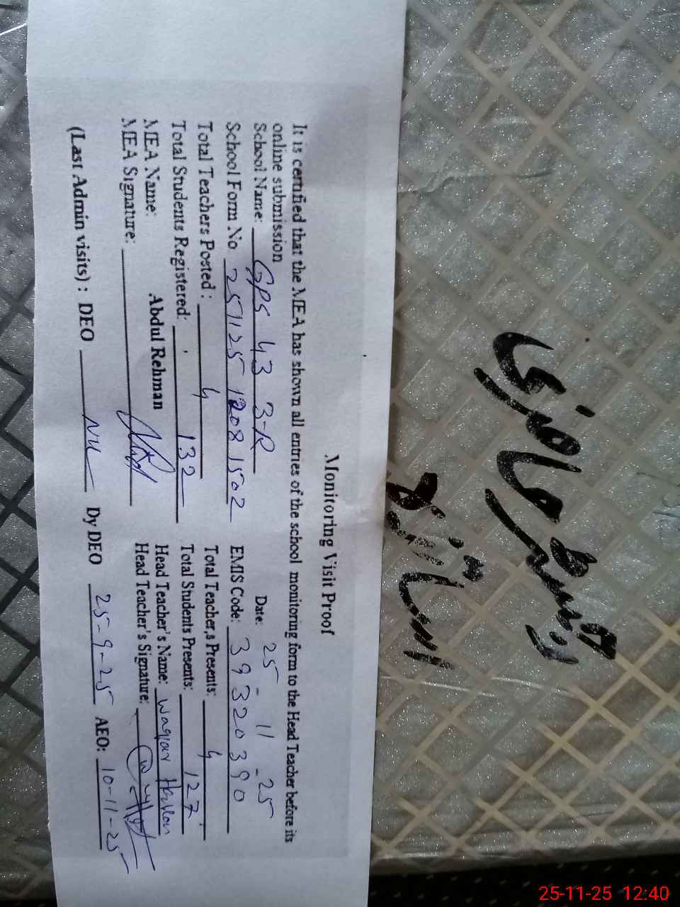 | EMIS Code: 39320390 | Name of School: GPS CHAK NO. 43/ 3-R | |||