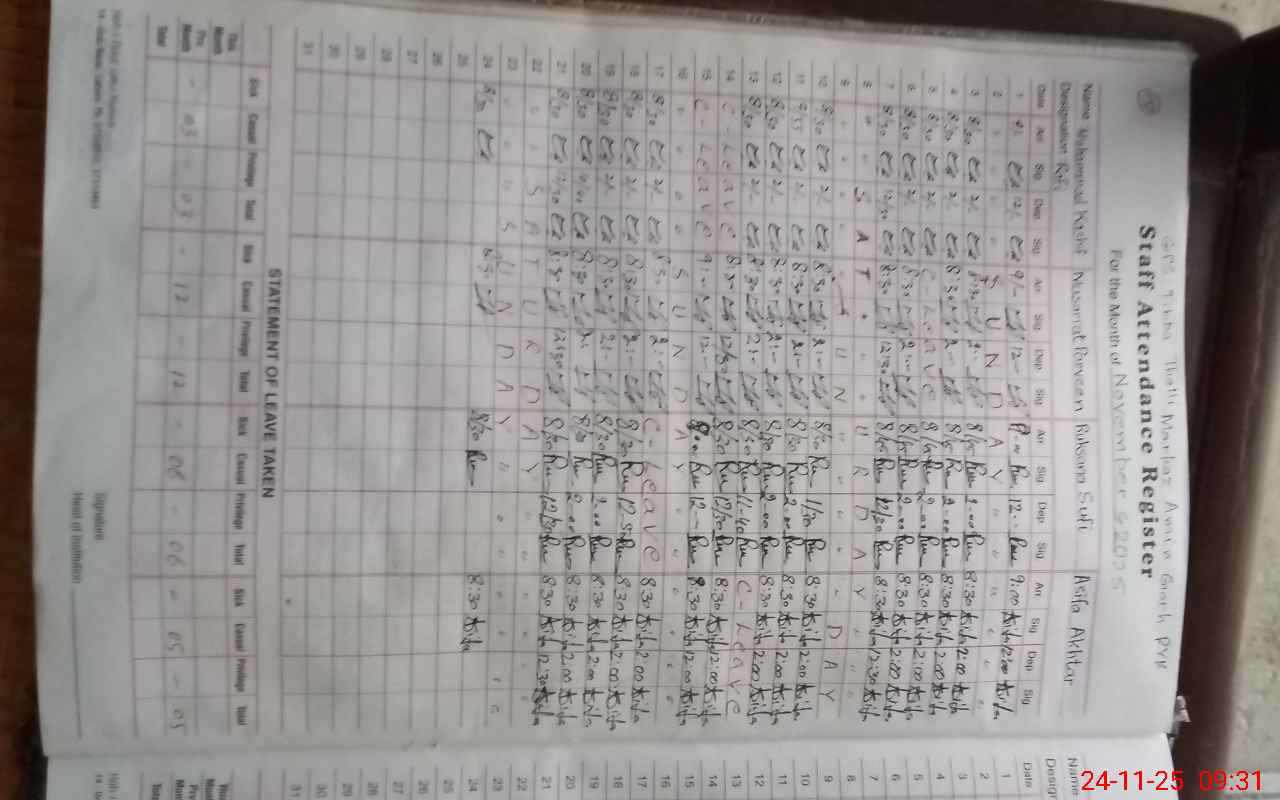 | CNIC | Full Name | Designation | R/C | Absence During Last Calender Month |