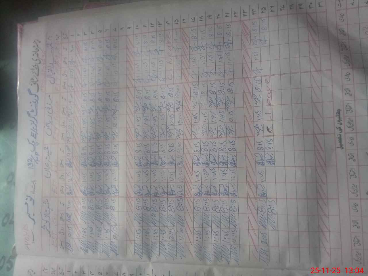 | CNIC | Full Name | Designation | R/C | Absence During Last Calender Month |