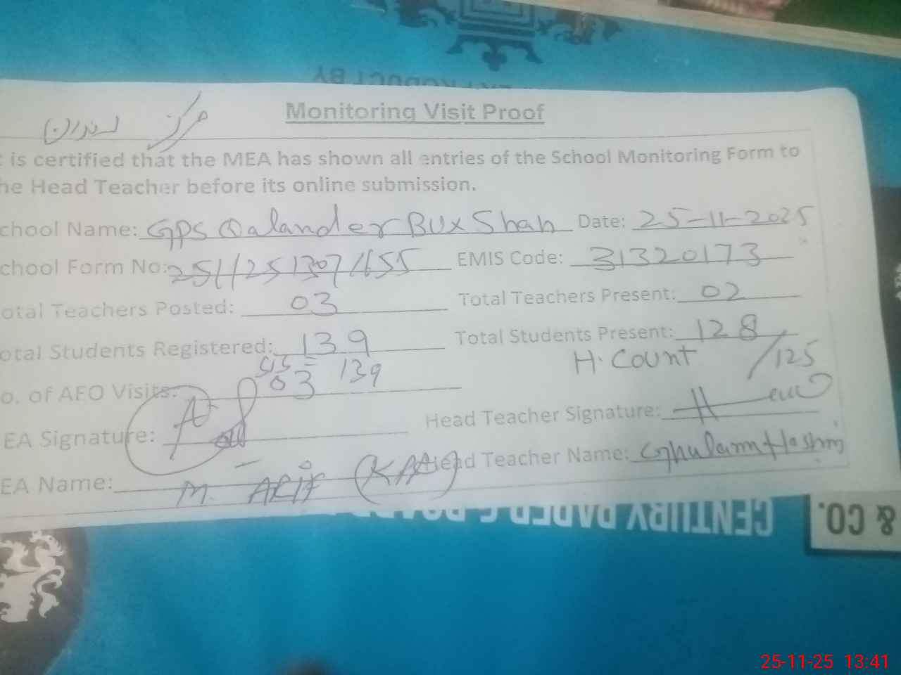 | EMIS Code: 31320173 | Name of School: GPS QALANDER BUKHASH | |||