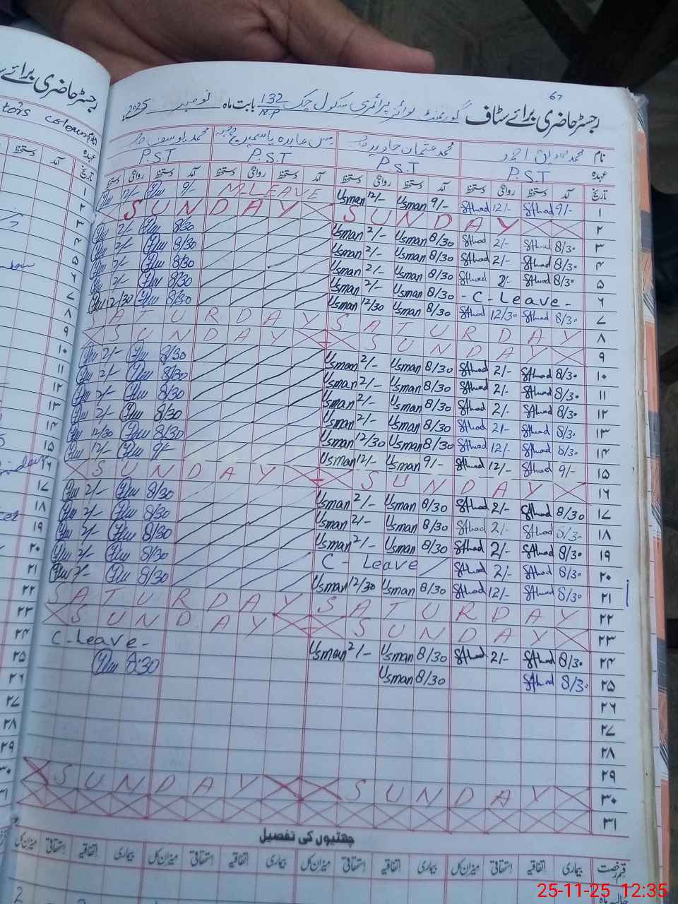 | CNIC | Full Name | Designation | R/C | Absence During Last Calender Month |