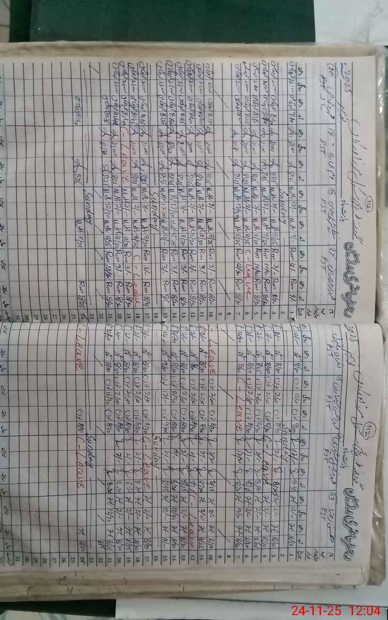 | CNIC | Full Name | Designation | R/C | Absence During Last Calender Month |