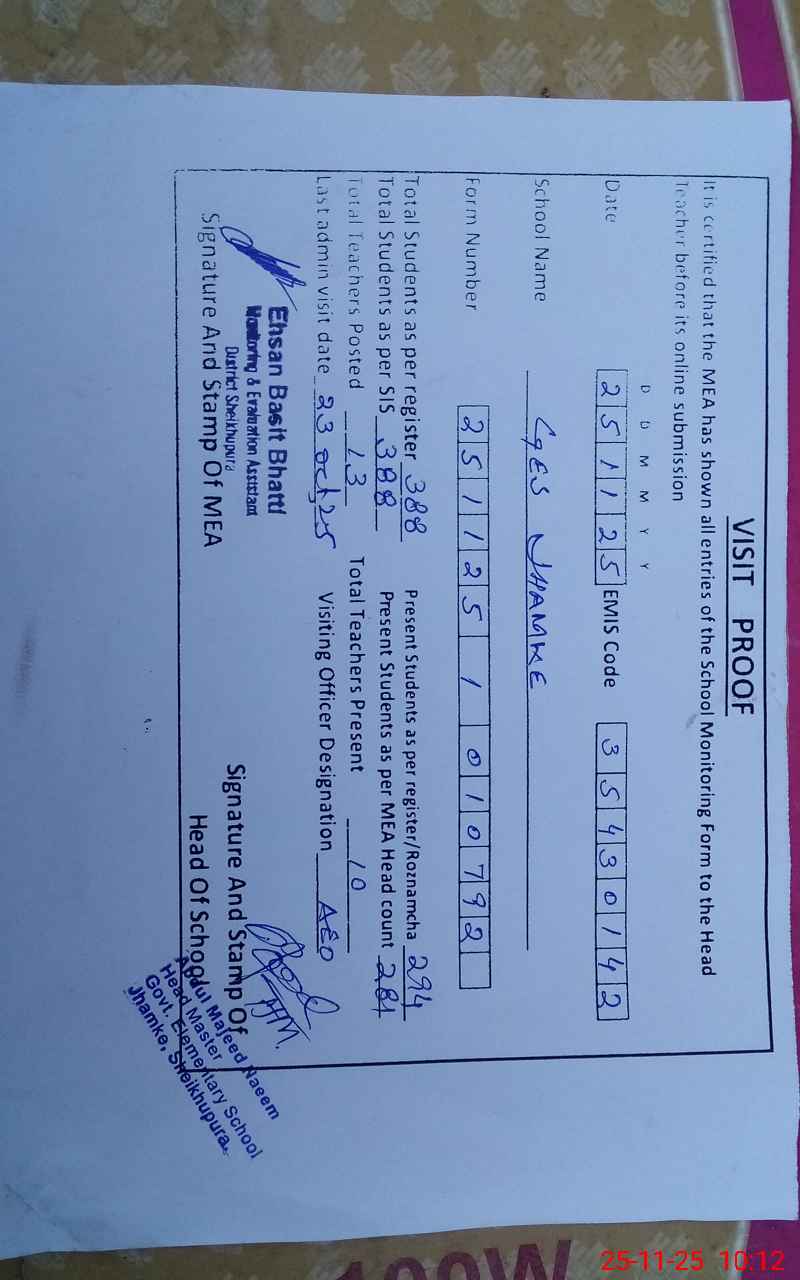 | Certified that this School was Inspected by the Undersigned MEA/DMO Today and the Information Stated Above is as Per Record. | |||||