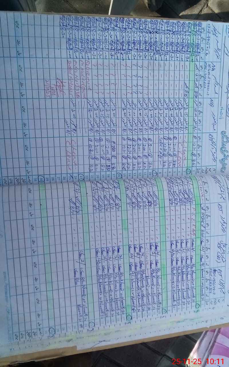 | CNIC | Full Name | Designation | R/C | Absence During Last Calender Month |