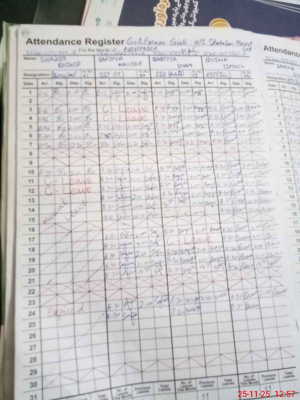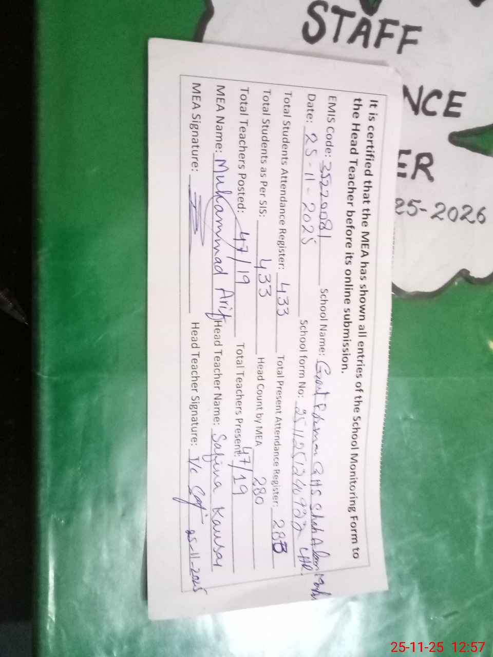 | Remarks (Use Separate Page if Required): Head Teacher Shazia Rashid has died on 22/11/25 . | |||||