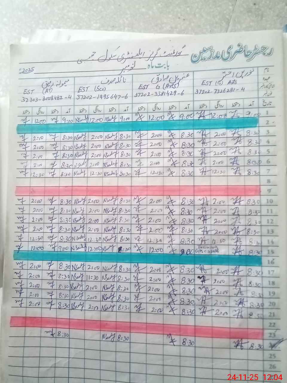 | CNIC | Full Name | Designation | R/C | Absence during last cal. month |