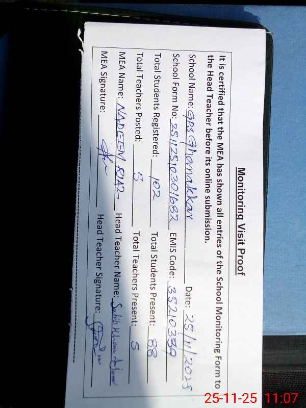 | EMIS Code: 35210339 | Name of School: GPS GHANAKKAR TEHSIL MODEL TOWN | |||
