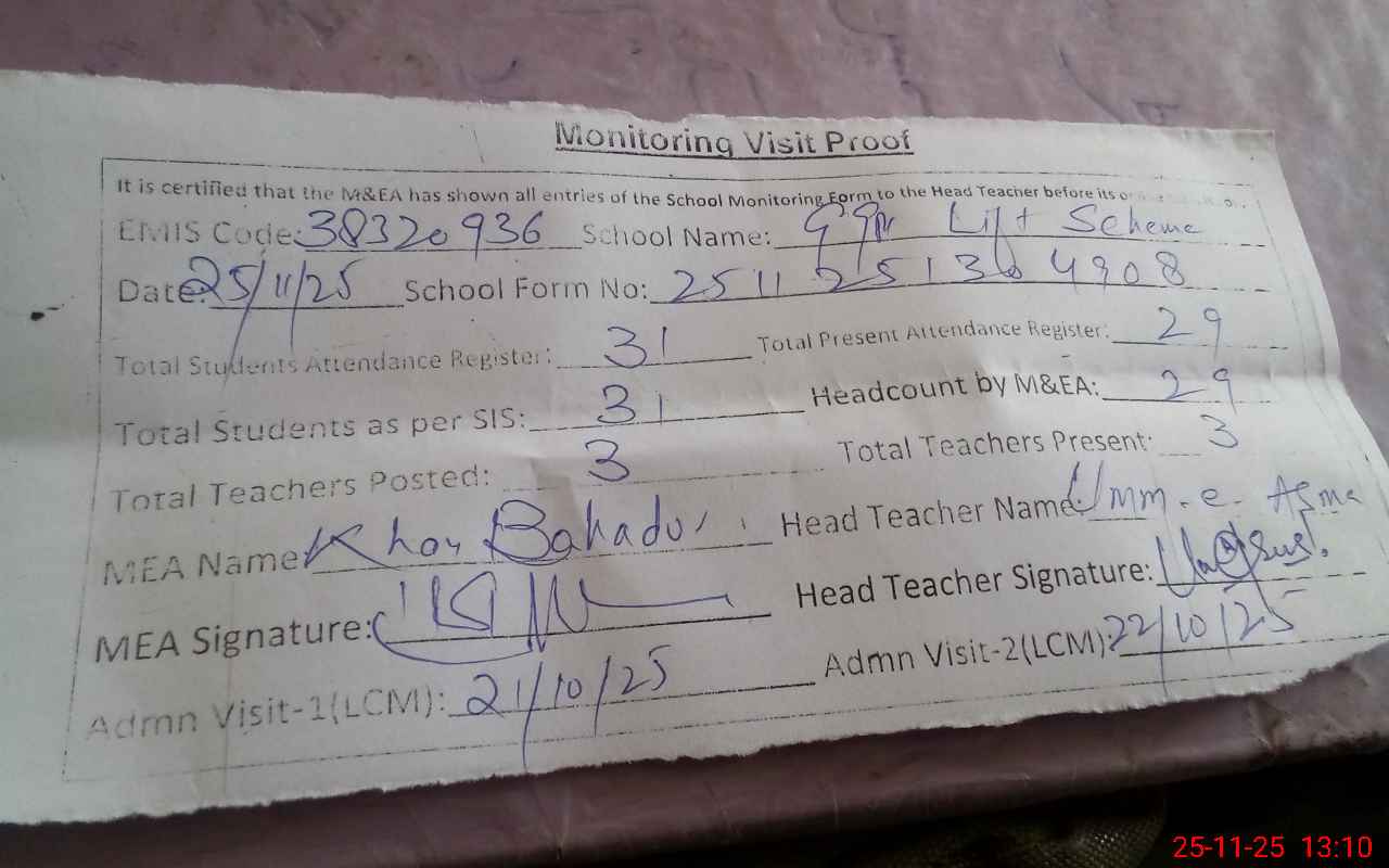 | Attendance Register | Head Teacher | MEA with School | Visit Proof |