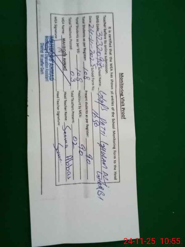 | EMIS Code: 32320907 | Name of School: GGPS PATTI GHULAM ALI GHARBI | |||