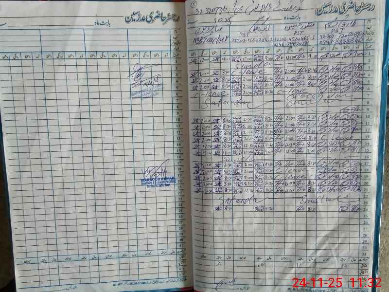 | CNIC | Full Name | Designation | R/C | Absence During Last Calender Month |