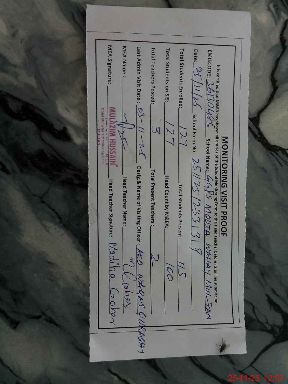 | EMIS Code: 36130485 | Name of School: GGPS MOUZA WAHAY | |||