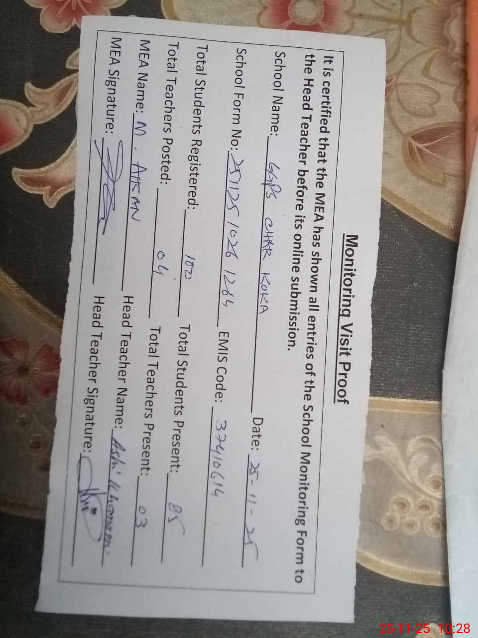 | EMIS Code: 37410614 | Name of School: GGPS CHAK KOKA TEH CHAKWAL | |||