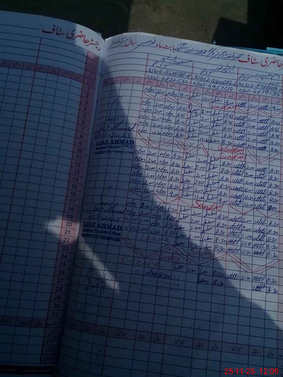 | CNIC | Full Name | Designation | R/C | Absence during last cal. month |